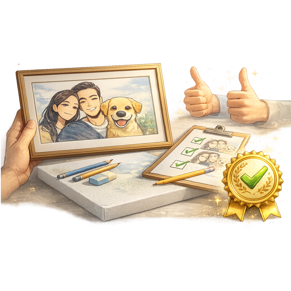 Zależy nam na Twoim czasie — dlatego portret przygotowywany jest sprawnie i z dbałością o detale. Gotowy projekt otrzymasz w ciągu 24–48 godzin, w zależności od wybranego wariantu.