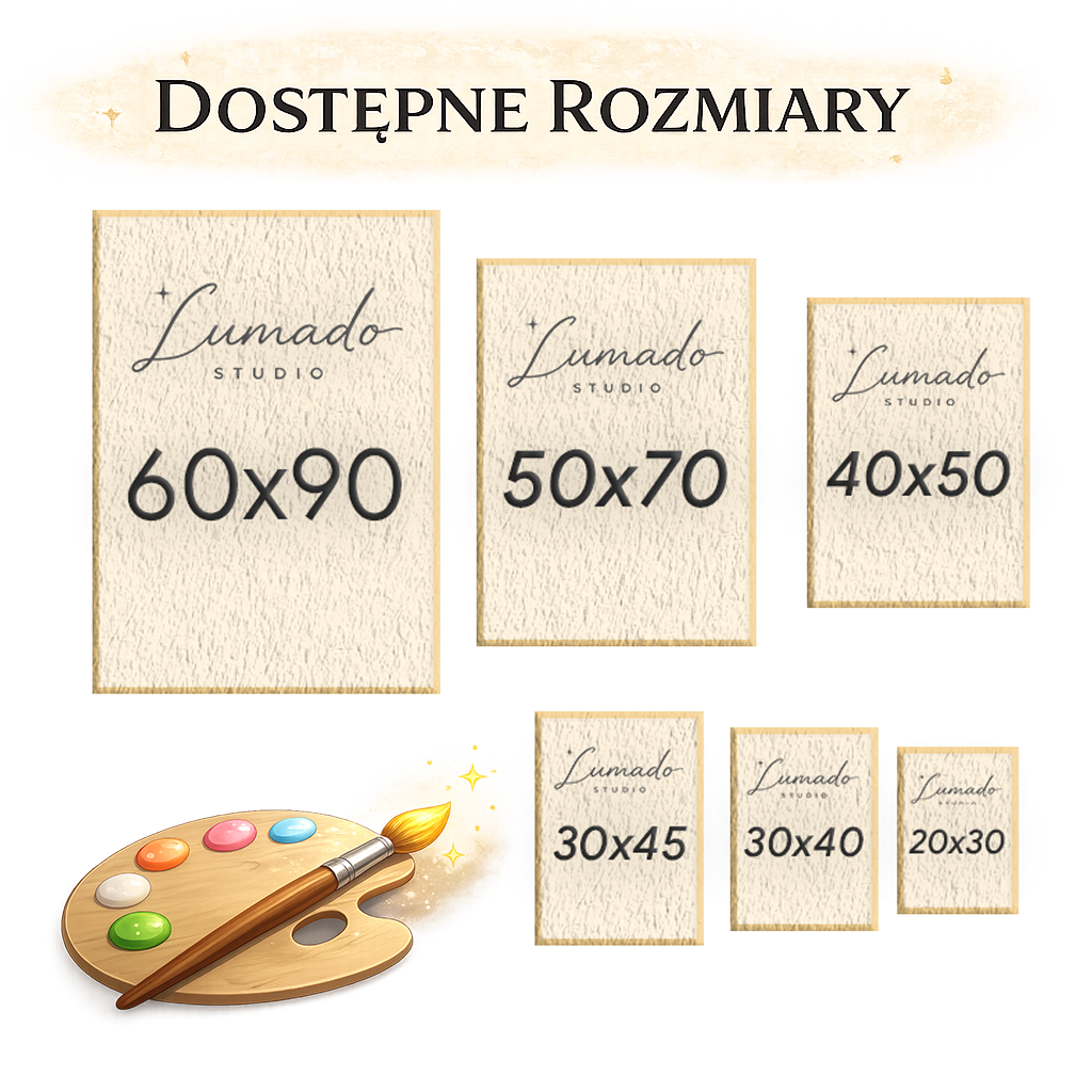 Dostępne formaty dopasowane do różnych wnętrz — oferujemy wiele rozmiarów, dzięki czemu z łatwością wybierzesz idealny wariant: od mniejszych dekoracji po duże, efektowne obrazy, które staną się centralnym punktem pomieszczenia.